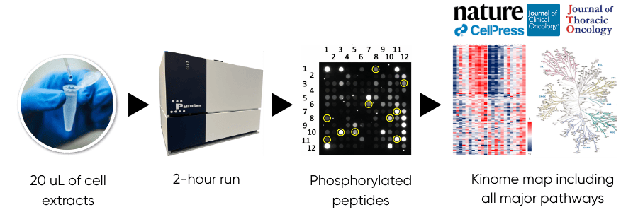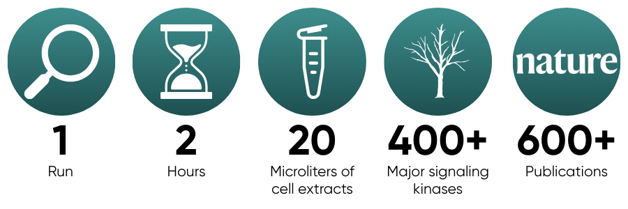 Kinome profiling measures the activity across all 400+ major signaling kinases, producing pathway-level signatures from small sample input.